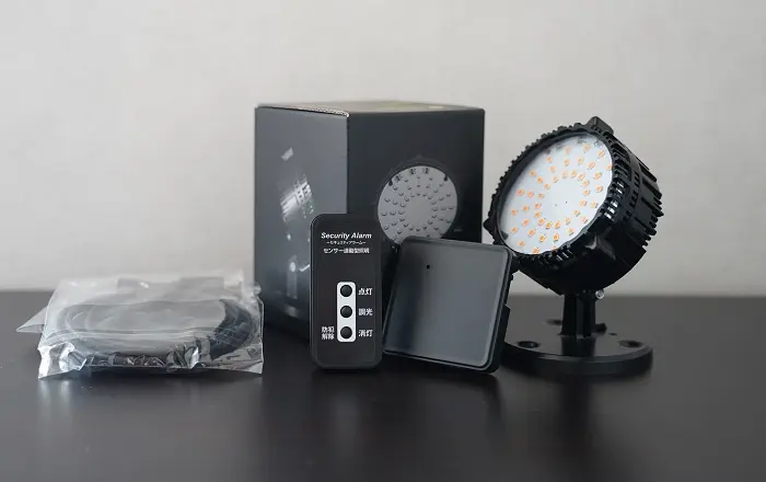 センサー連動型照明2台、リモコン1台、4mの延長ケーブル 2本が同封されています。 それぞれ単品でも購入できますが、キットはお買い得な価格設定になっています。