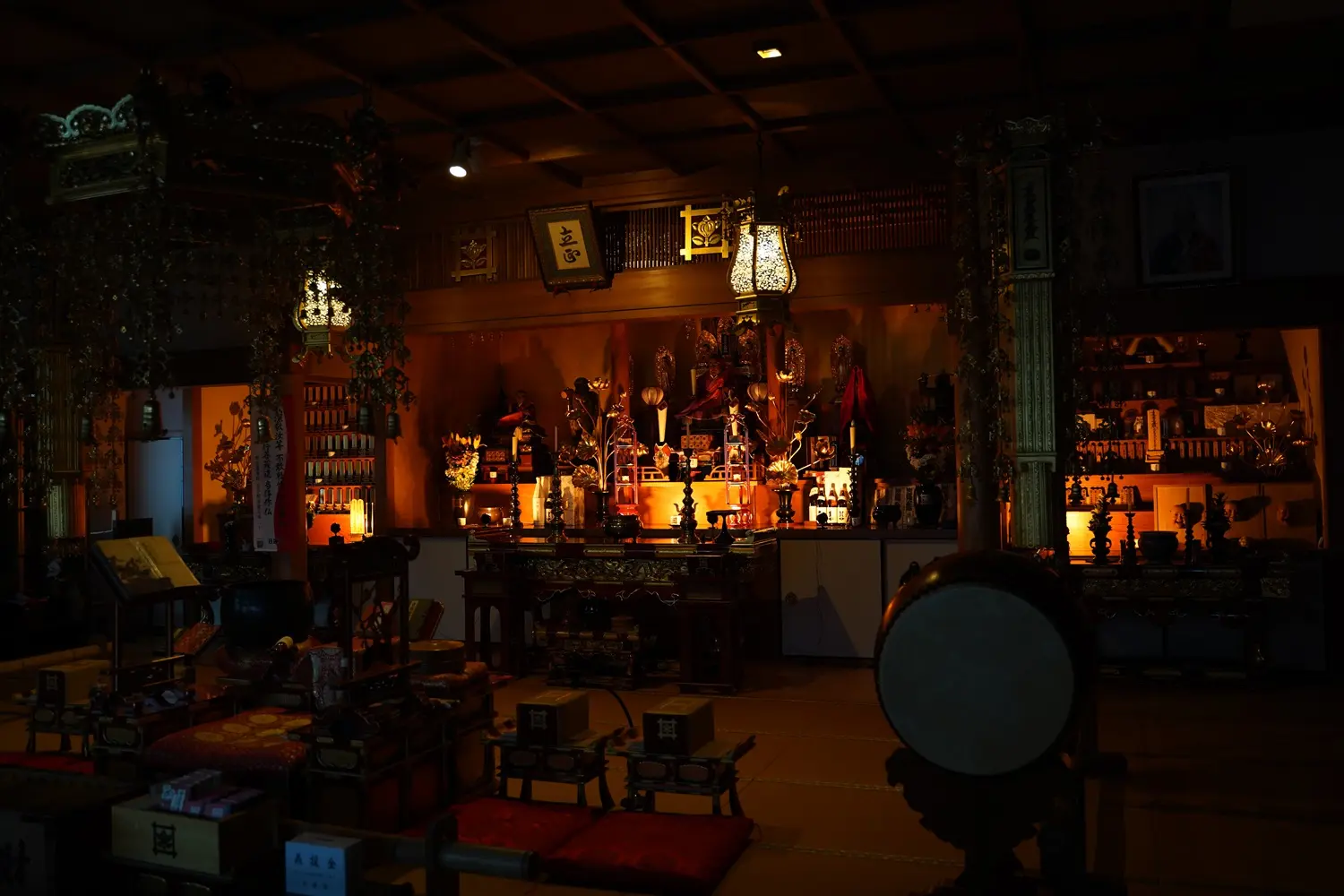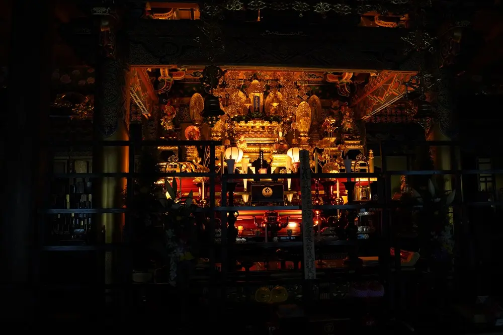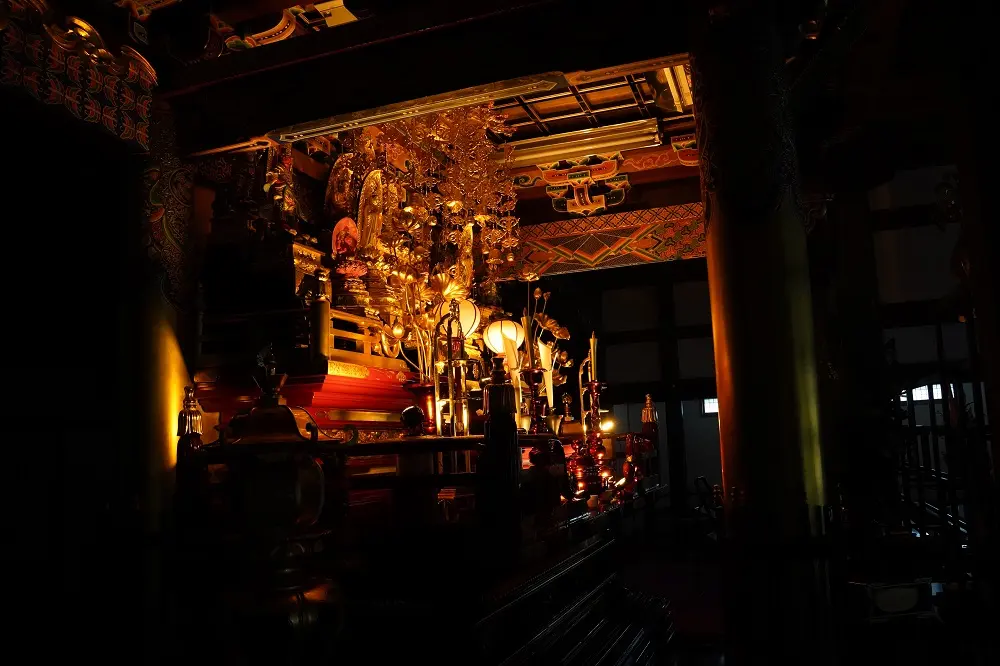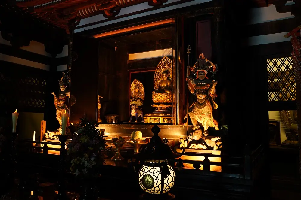 強すぎず暗すぎない、ご本尊との距離や周囲の明るさに応じて、ちょうどよい光に整えられます。